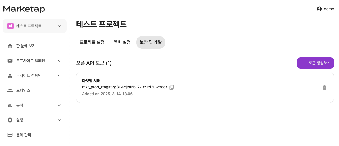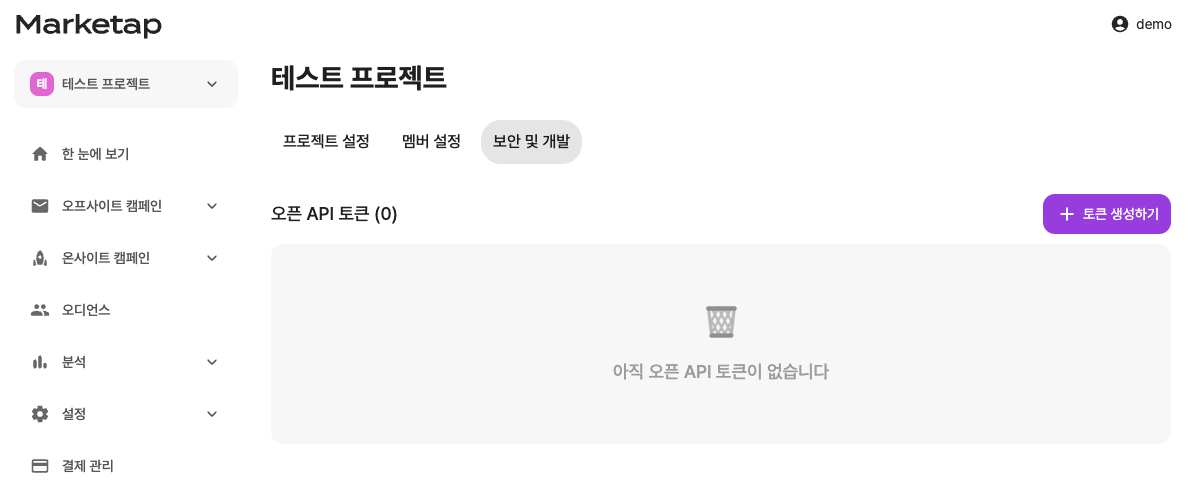 Open API를 통해 데이터를 전달하기 위해서는 보안을 위해 프로젝트에서 토큰을 발급받은 뒤, Authorization 헤더에 해당 토큰 값을 입력해주어야 합니다.